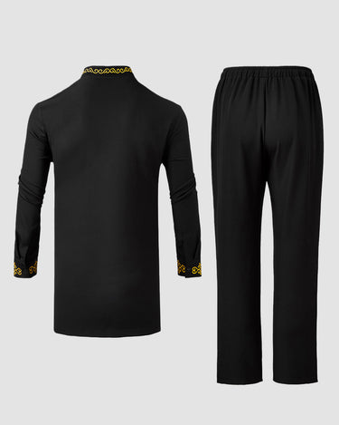 Lässiges Herren-Set mit Rundhalsausschnitt und schlichtem Knopf in Schwarz