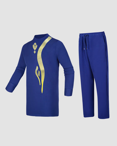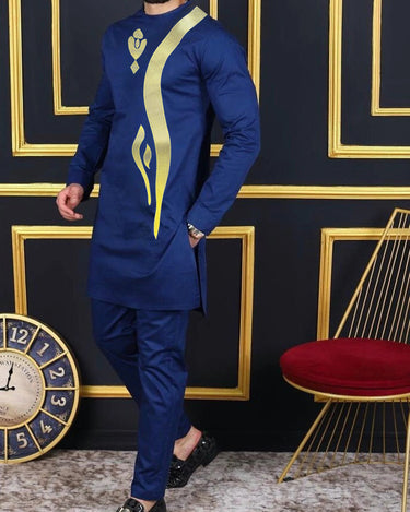 Afrikanisches ethnisches besticktes blaues Festival-Party-Set für Herren