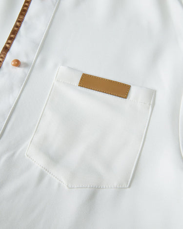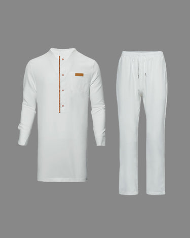 Werten Sie Ihren Stil mit unserem weißen Herrenset mit aufgesetzten Ledertaschen in Übergröße auf. Dieses Set ist perfekt für jeden Anlass und verfügt über aufgesetzte Ledertaschen für einen Hauch von Kantigkeit und Komfort. Zeigen Sie Ihren einzigartigen Sinn für Mode mit diesem Must-have-Set!