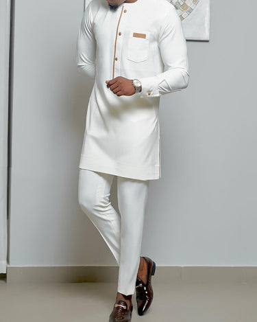 Weißes Herren-Set aus Leder mit aufgesetzter Tasche in Übergröße
