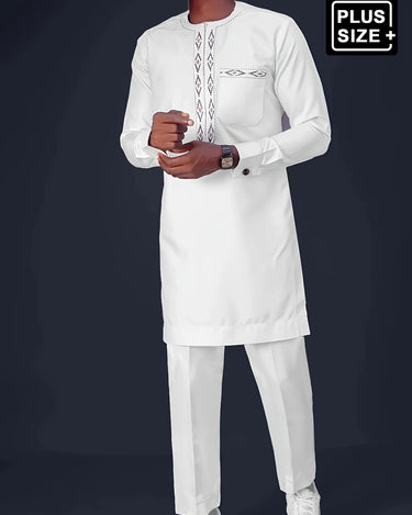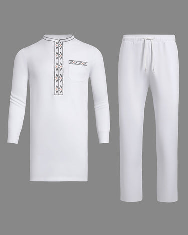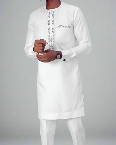 Afrikanisches ethnisches besticktes Taschenset für Herren in Weiß