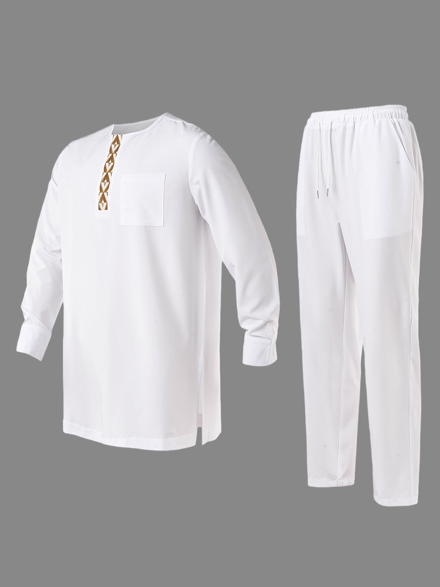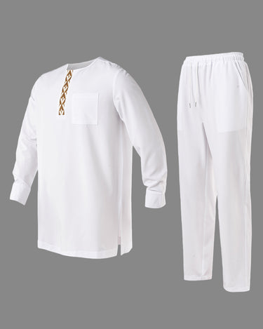 Entfesseln Sie Ihre innere Stilikone mit unserem lässigen Rundhals-Set mit schwarzen, schlichten Knöpfen für Männer. Mit seinem einzigartigen und trendigen Design heben Sie sich von der Masse ab. Dieses Set ist bequem und mühelos cool und eignet sich perfekt für jeden lässigen Anlass. Machen Sie sich bereit, ein Statement abzugeben!