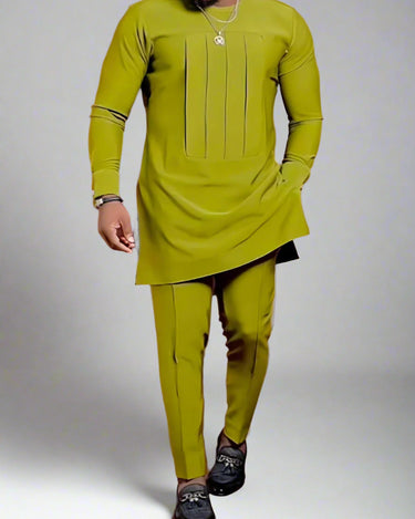 Machen Sie sich bereit, mit diesem lässigen Herrenset in Übergröße stilvoll aufzufallen! Mit seiner leuchtend gelben Farbe und dem einzigartigen gefalteten Design wird dieses Set garantiert für Aufsehen sorgen. Es ist perfekt für jeden lässigen Anlass und bietet sowohl Komfort als auch Stil für den modernen Mann.