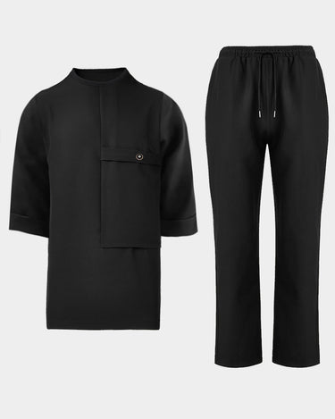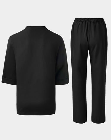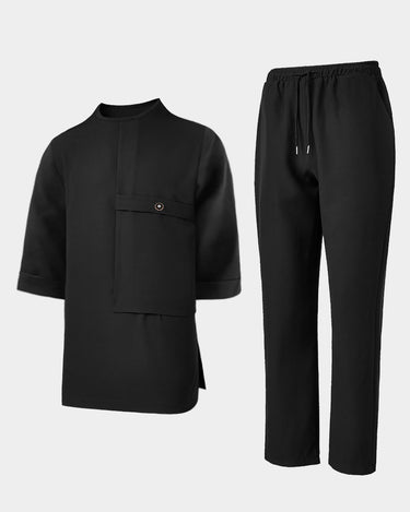 Lässiges Herren-Set mit Rundhalsausschnitt und schlichtem Knopf in Schwarz
