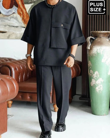 Entfesseln Sie Ihre innere Stilikone mit unserem lässigen Rundhals-Set mit schwarzen, schlichten Knöpfen für Männer. Mit seinem einzigartigen und trendigen Design heben Sie sich von der Masse ab. Dieses Set ist bequem und mühelos cool und eignet sich perfekt für jeden lässigen Anlass. Machen Sie sich bereit, ein Statement abzugeben!