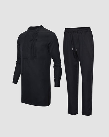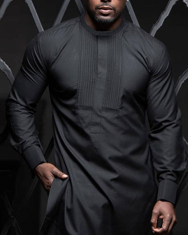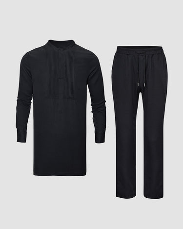 TACOHEAL African Long Sleeve Black Pleated Design Men's Set