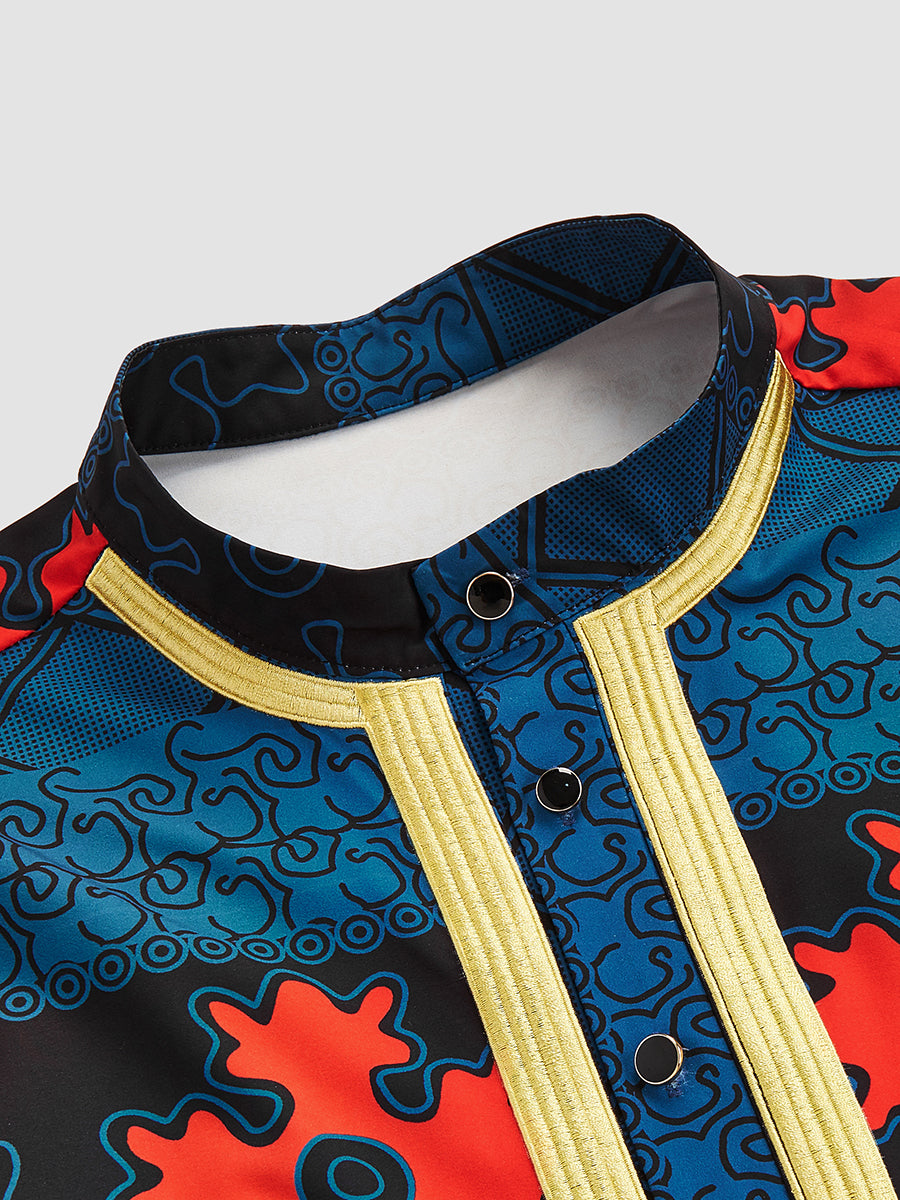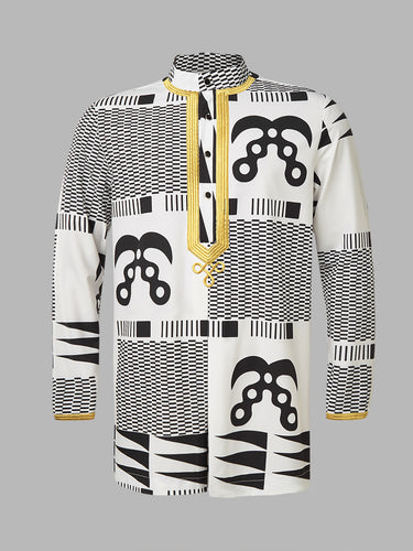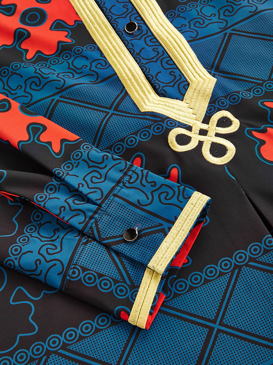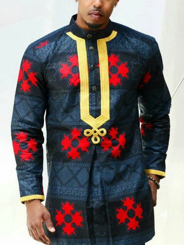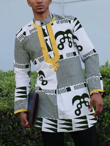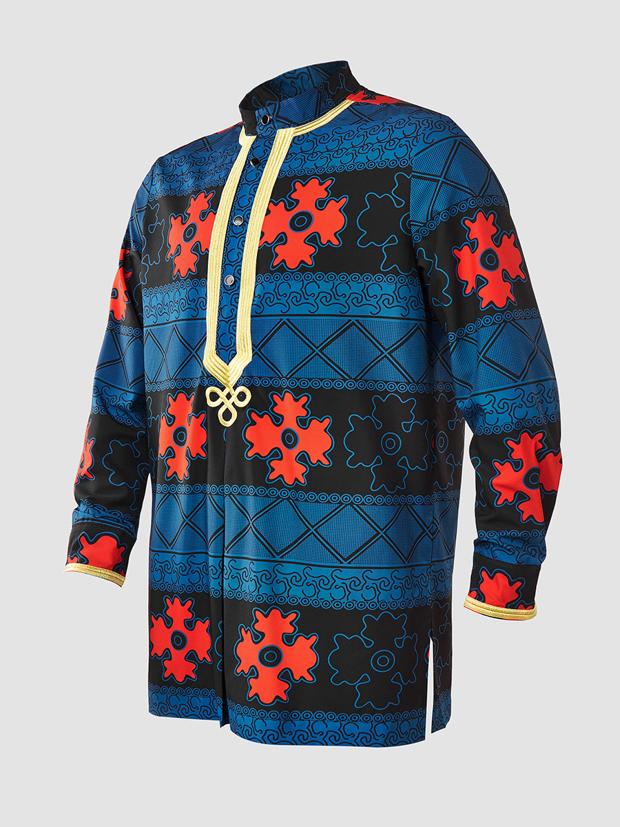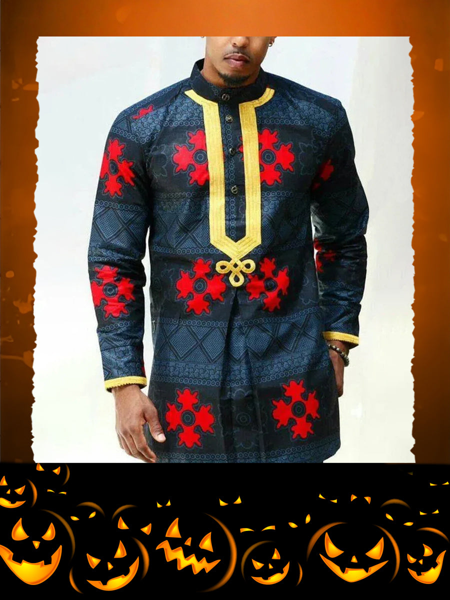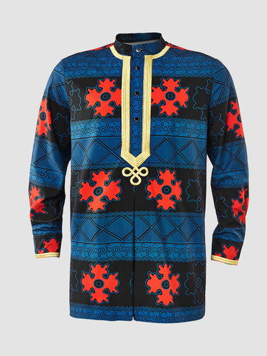 TACOHEAL Ethnic African Printed Long Sleeve Men's Shirt