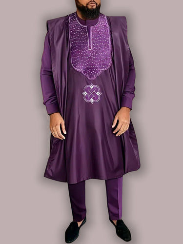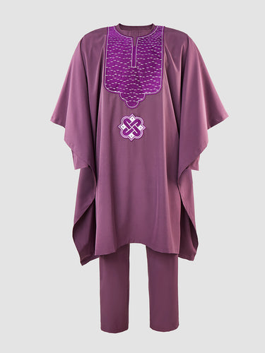 TACOHEAL Ethnic Embroidered Men's Purple Agbada 3 Pieces Set