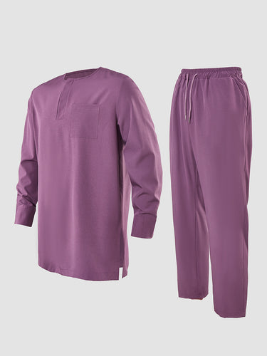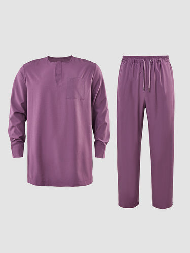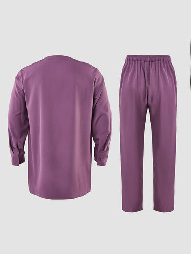 2. Elegant Style: Drawstring trousers provide an adjustable, relaxed fit, complementing the ensemble’s sophistication. Pullover outer robe slips on effortlessly, enhancing the regal aesthetic.