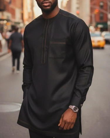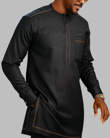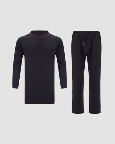 Step up your fashion game with this black embroidered men's set! Its long sleeves add a touch of sophistication while the embroidered details give it a unique twist. Comfort and style all in one set. Upgrade your wardrobe now!