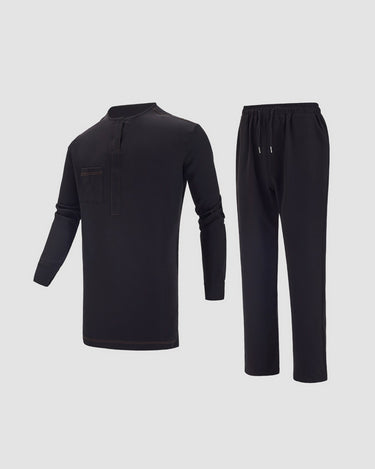TACOHEAL Long Sleeve Black Embroidered Men's Set