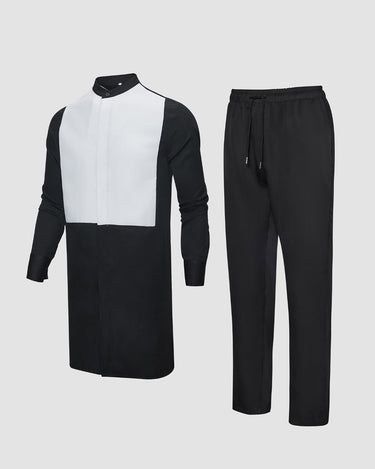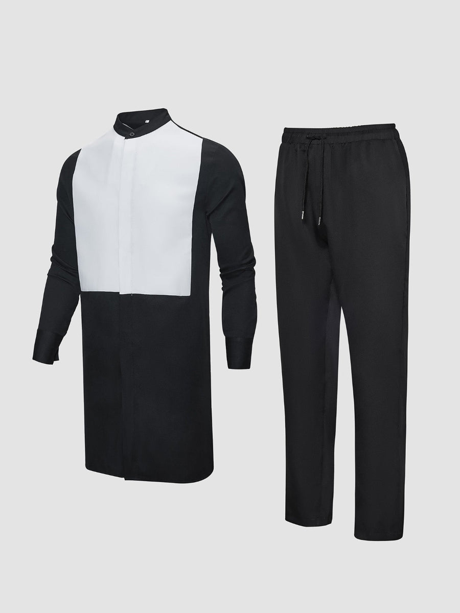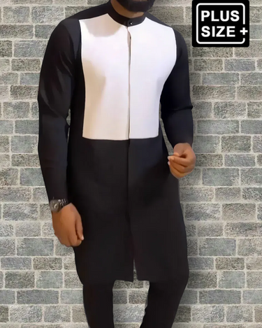 Step up your style with this Plus Size African Black Colorblock Long Sleeve Men's Set. Designed for larger frames, this set offers a bold and unique look with its black colorblock design. Stay comfortable all day with its long sleeve feature. Perfect for standing out from the crowd, while staying effortlessly cool.