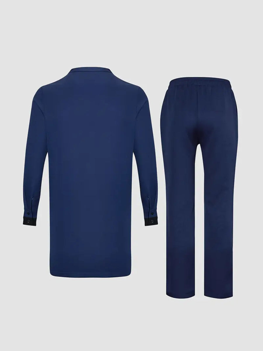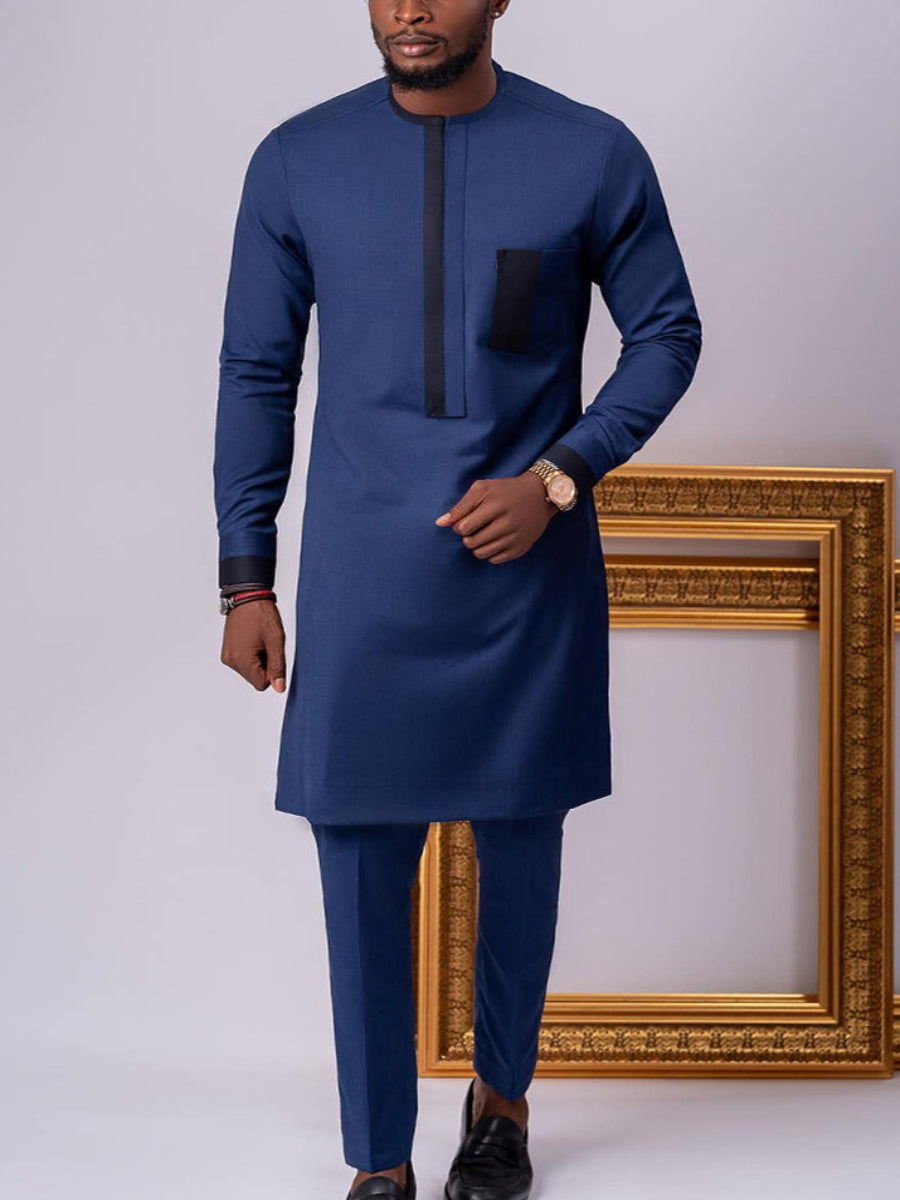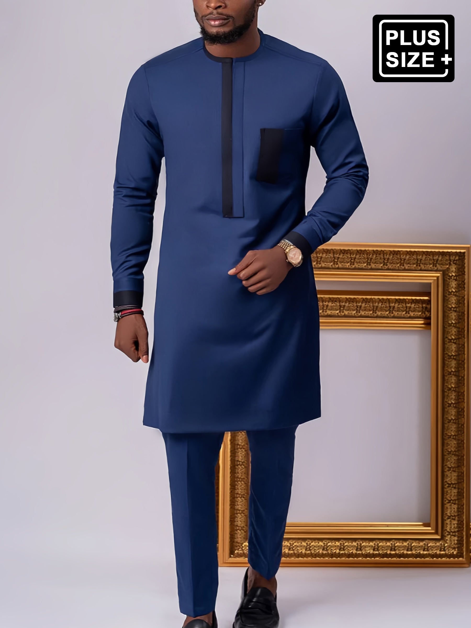 Don't settle for boring clothes when you can spice up your style with our Plus Size African Blue Colorblock Pocket Men's Set! With vibrant colorblocking and convenient pockets, this set is perfect for those who want to make a statement and stay organized. Upgrade your wardrobe today!