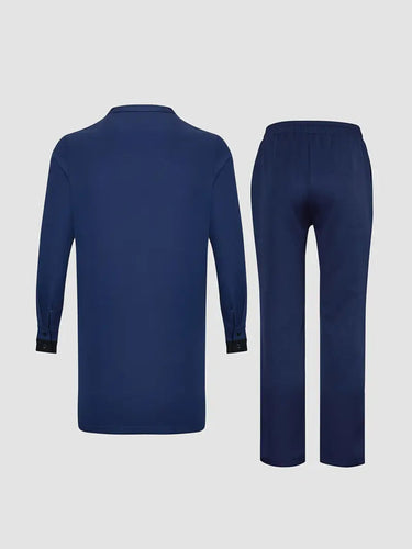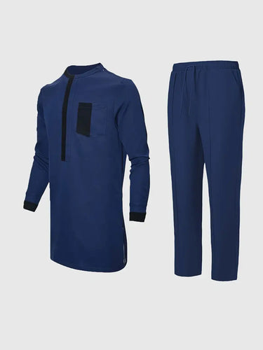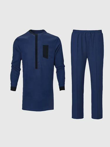TACOHEAL Plus Size African Blue Colorblock Pocket Men's Set