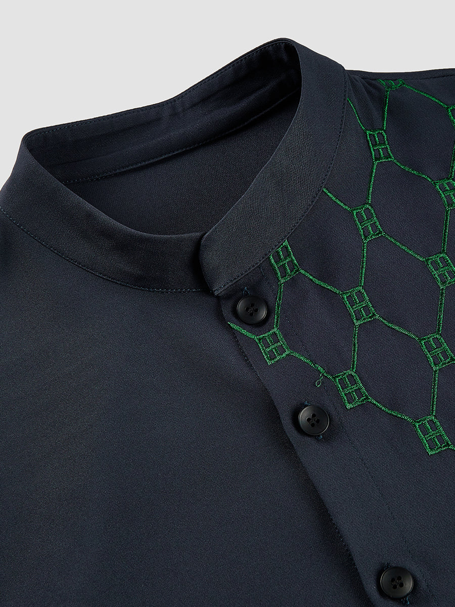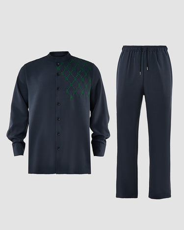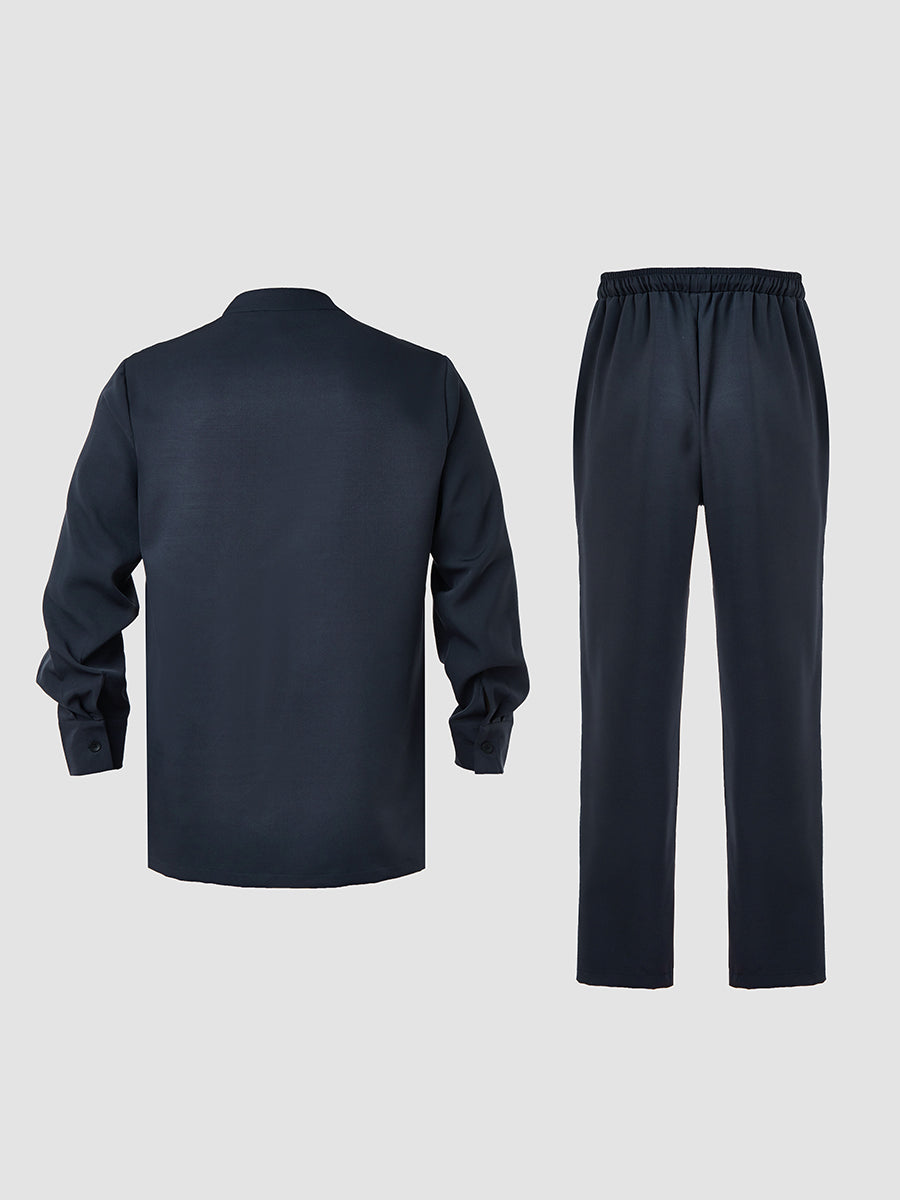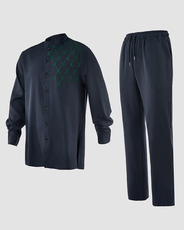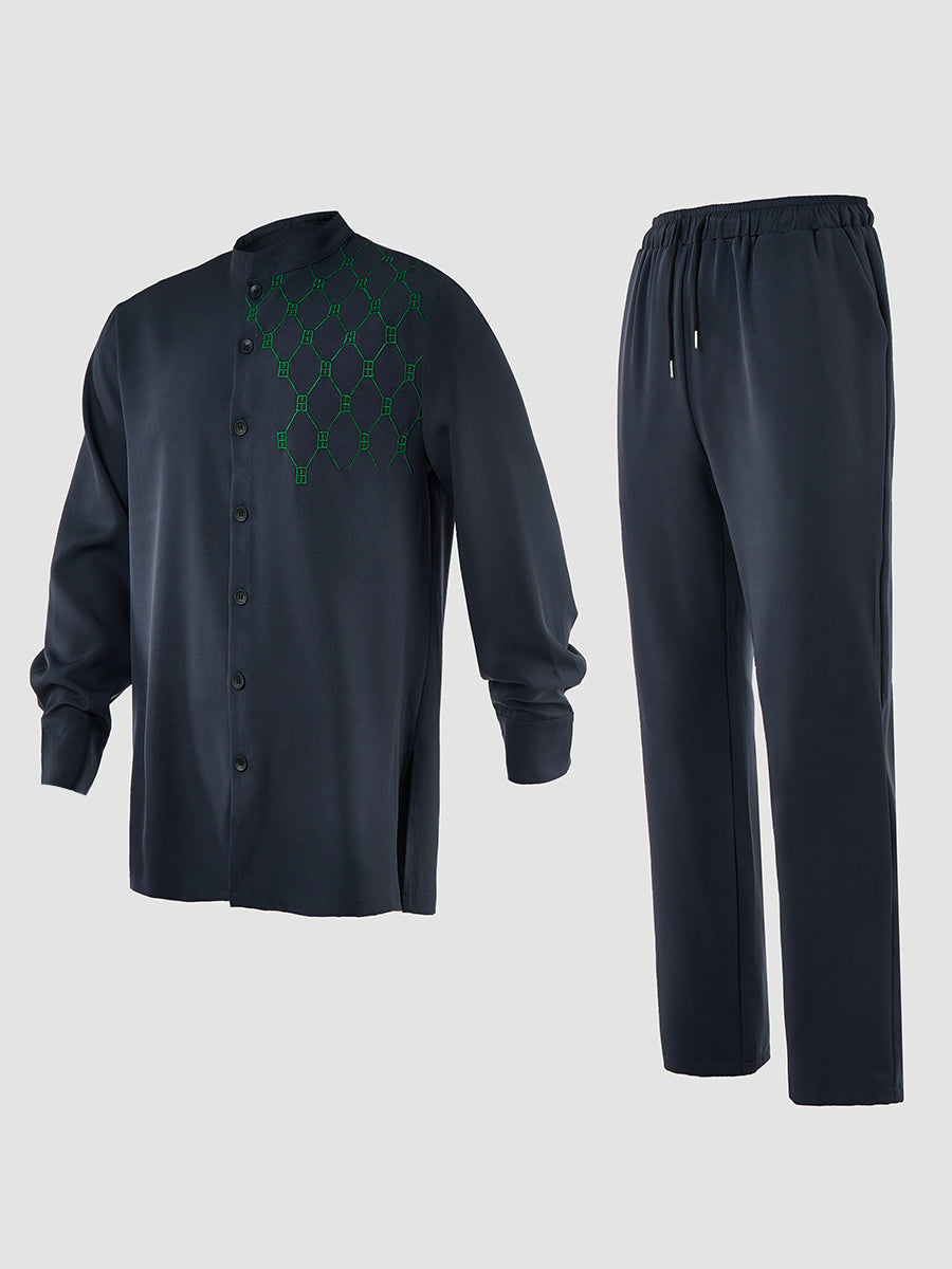 TACOHEAL Embroidered Button Down Long Sleeve Men's Set