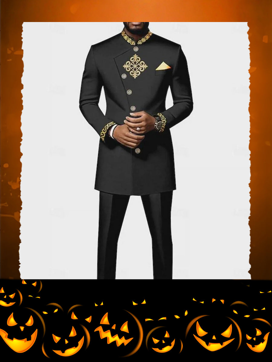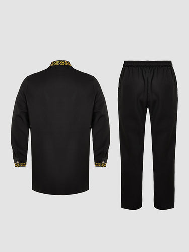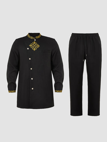 TACOHEAL Embroidered Button Down Men's Pants Set