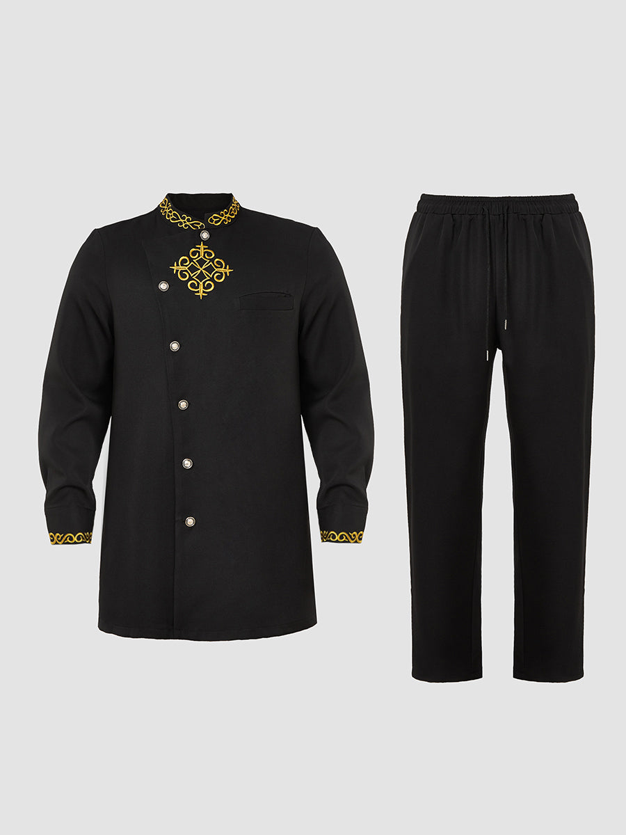 Step up your style game with the Embroidered Button Down Men's Pants Set. Featuring intricate embroidery and a sharp button-down design, this set blends casual cool with a hint of flair. Perfect for those who want to look effortlessly put-together while keeping comfort in check. Whether you're out on the town or just chilling, this set has got your look covered—stylish, comfy, and ready to impress.