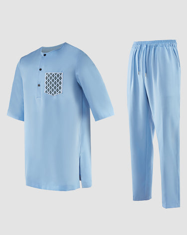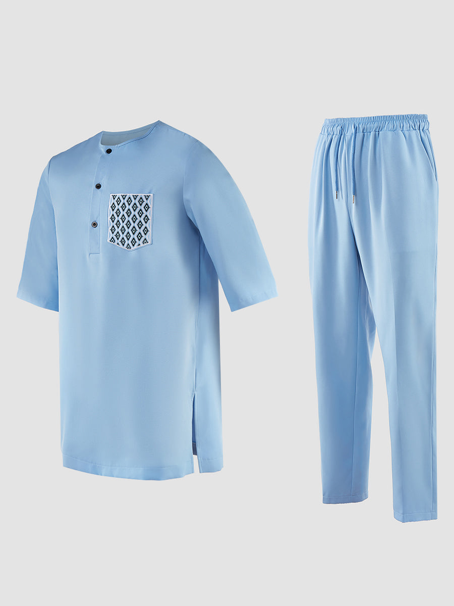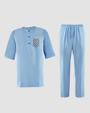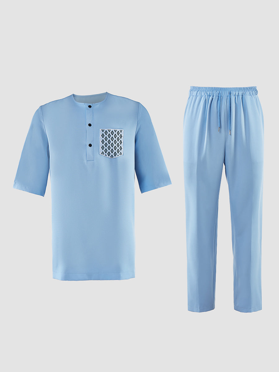 TACOHEAL Embroidered Pocket Short Sleeve Men's Set Elevate your casual wardrobe with this laid-back men's set featuring embroidered pocket details that add personality to every wear. The short sleeve design keeps you cool and comfortable, whether you're grabbing lunch or hanging with friends. Perfect for anyone who wants to look effortlessly put-together without trying too hard.