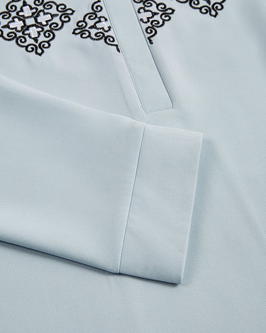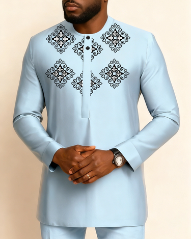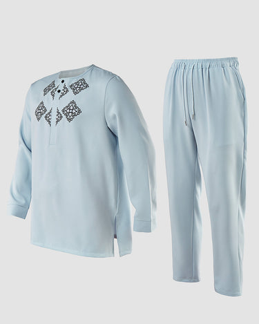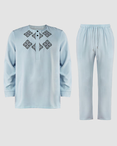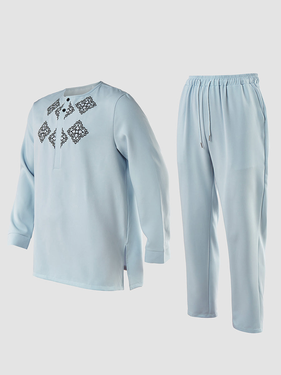 TACOHEAL Ethnic Embroidered Long Sleeve Pants Set For Men