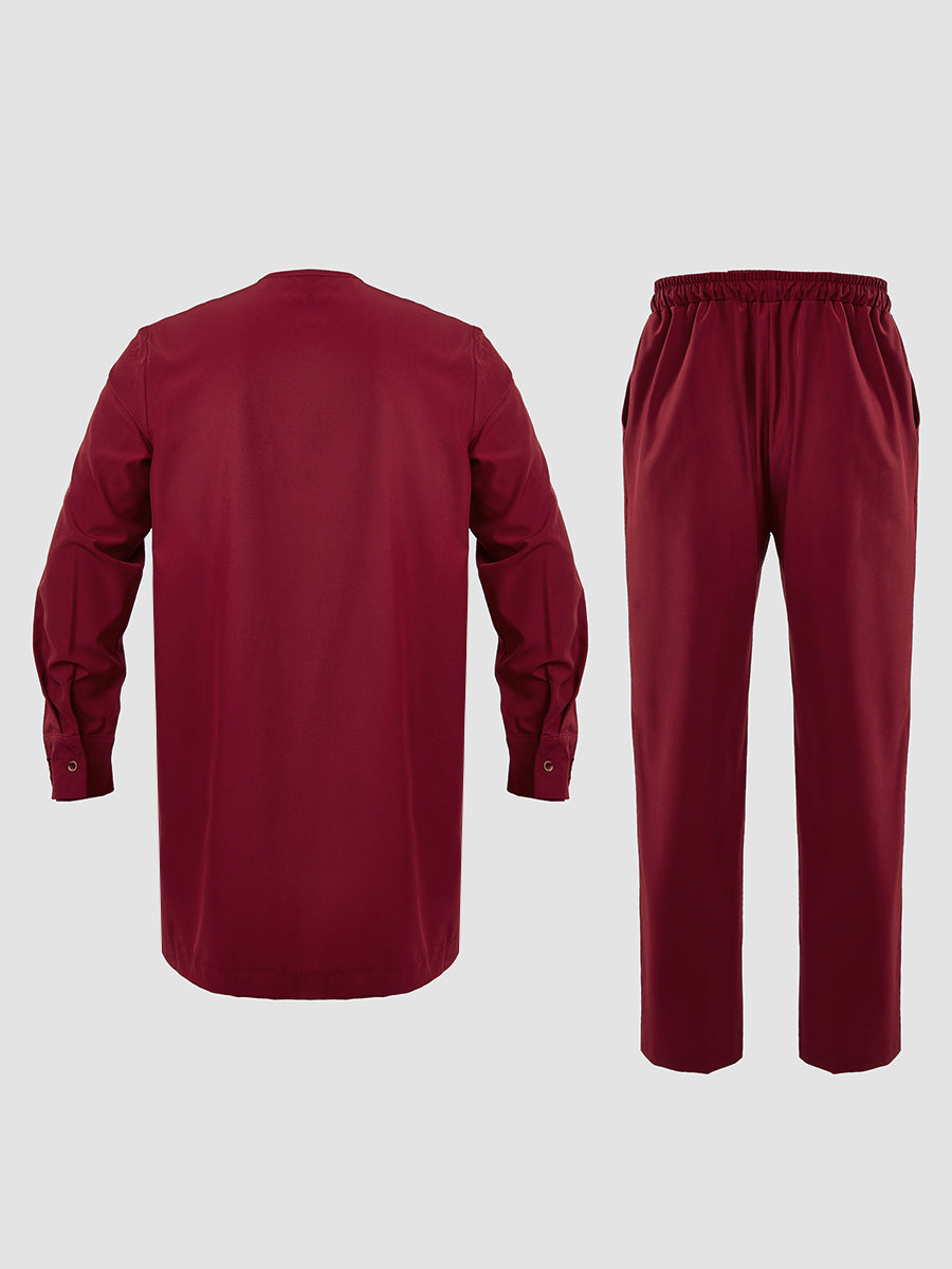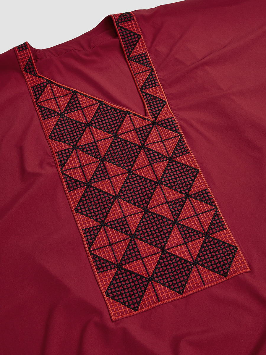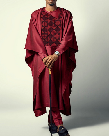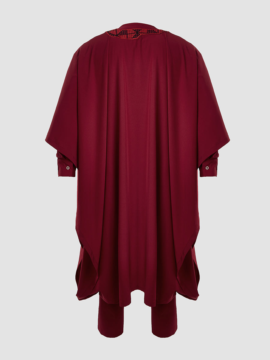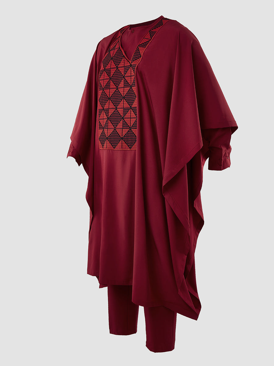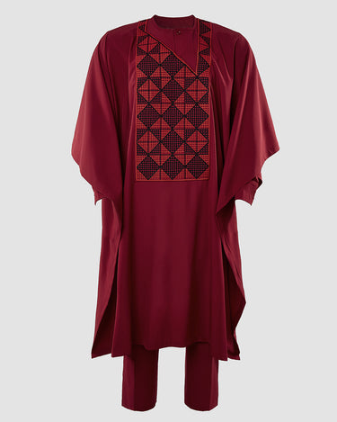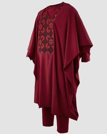 TACOHEAL Men's Embroidery Red Agbada 3 Pieces Set