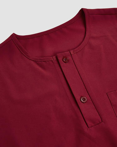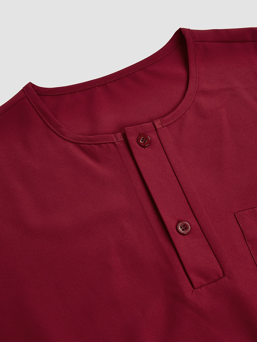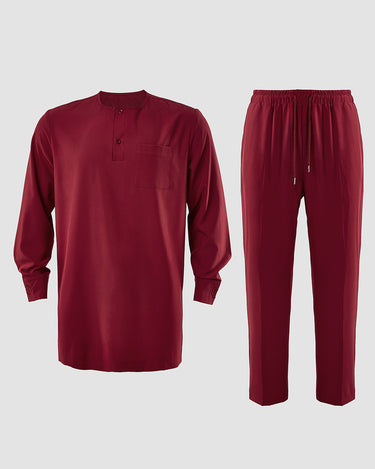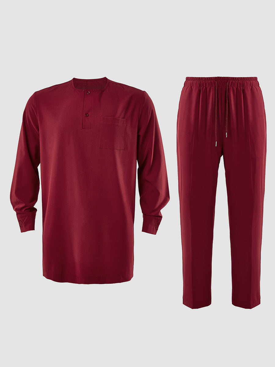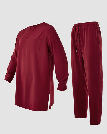 Closure Type: Drawstring trousers, a button-up shirt, and a pullover outer robe.
