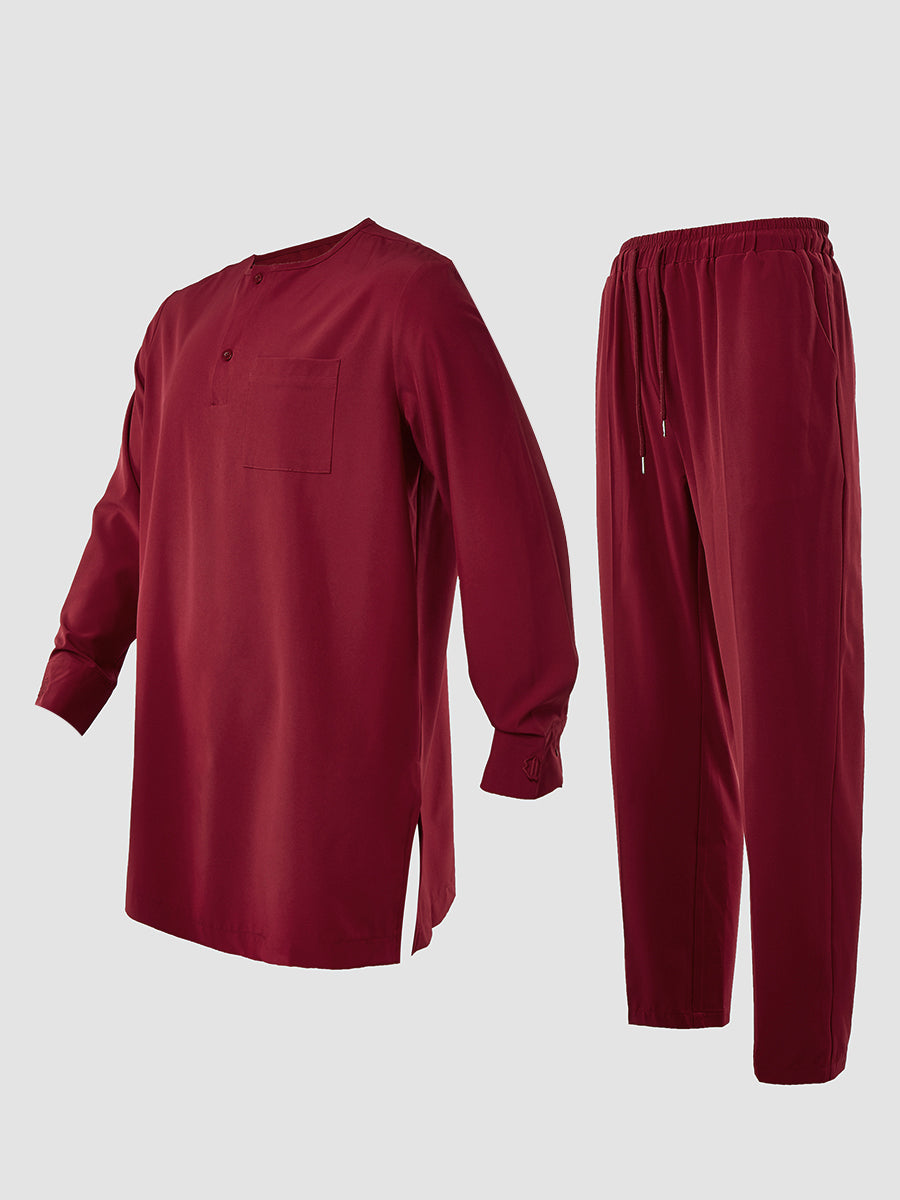 2. Elegant Style: Drawstring trousers provide an adjustable, relaxed fit, complementing the ensemble’s sophistication. Pullover outer robe slips on effortlessly, enhancing the regal aesthetic.