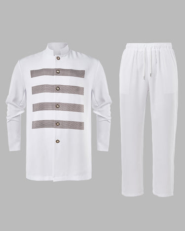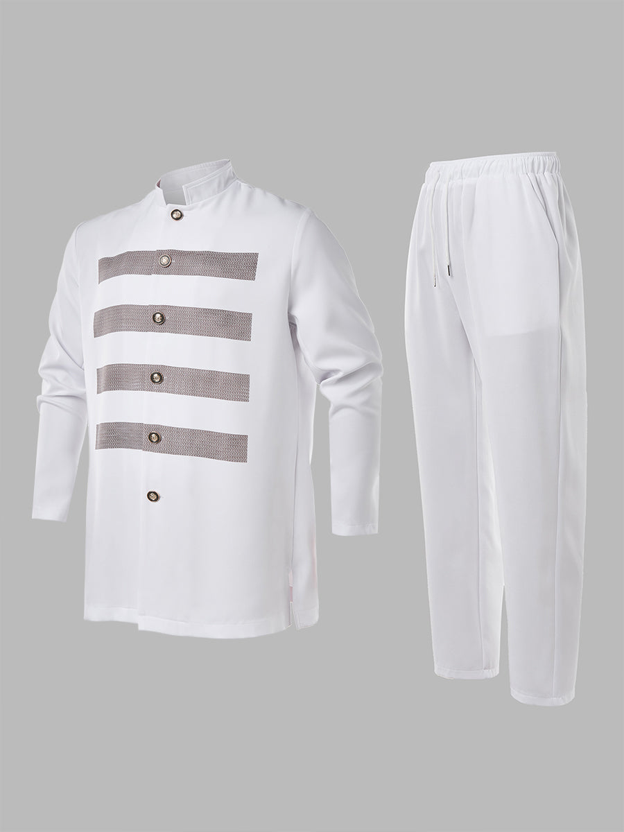 TACOHEAL Printed Long Sleeve Wedding Men's Pants Set