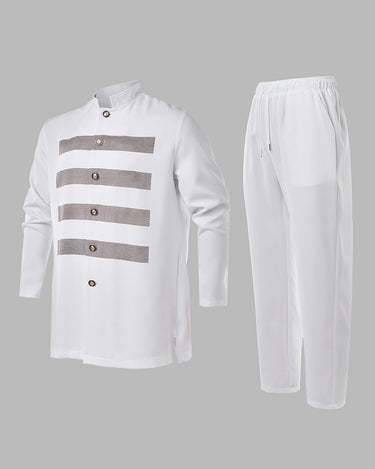 Elevate your wedding game with this dapper printed long sleeve set—because nothing says "I'm ready to celebrate" like coordinated style that actually fits. Featuring a sharp printed design paired with comfortable pants, you'll look sharp from the ceremony to the dance floor. Perfect for grooms, groomsmen, or anyone who wants to make a memorable entrance. Comfort meets sophistication in one unforgettable package.