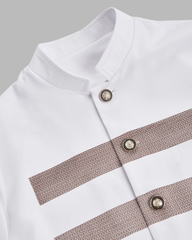 2. Elegant Style: Mandarin collar shirt with long sleeves for a classic yet stylish appeal.