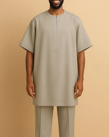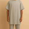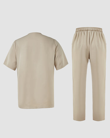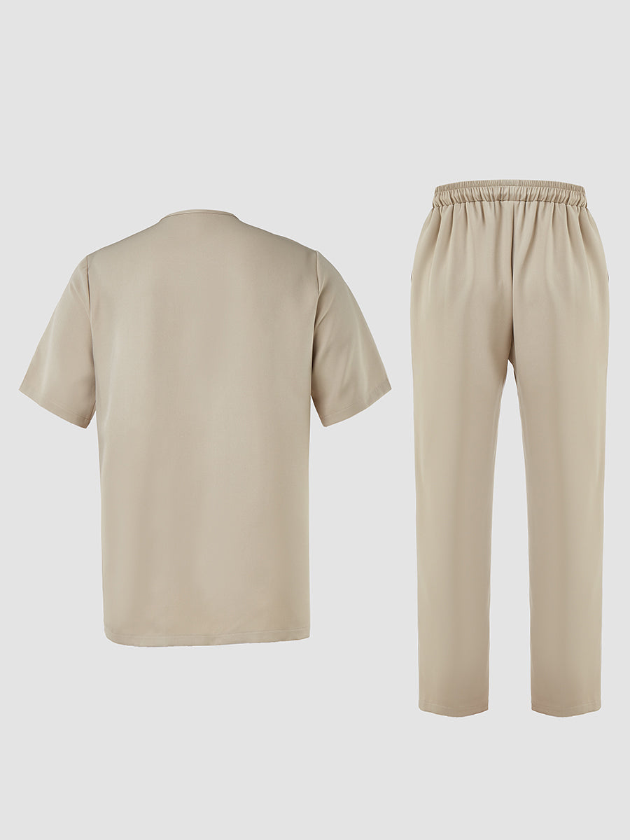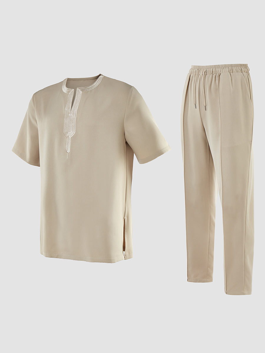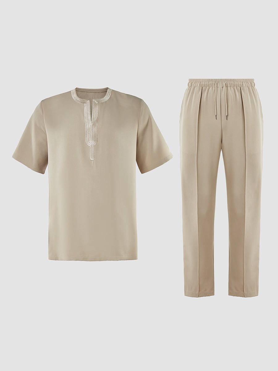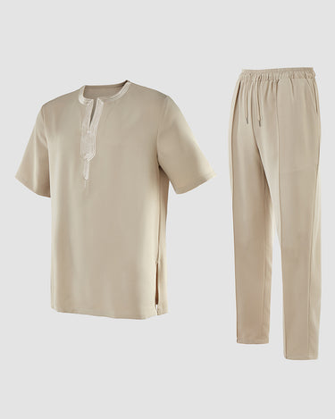 TACOHEAL Solid Embroidered Short Sleeve Men's Set